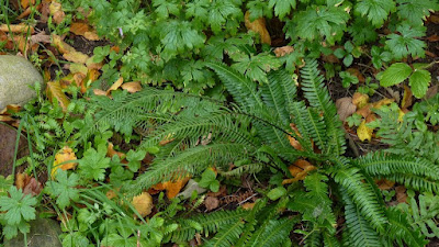 I dag har det været lidt mere efterårsagtigt, men stadig rimelig lunt. Så jeg har nusset lidt rundt med riven og luget i stenbedet. Det blev ikke til det store med et dårligt knæ, når man ikke kan ligge på knæ, er det ikke så nemt at luge. Men jeg kunne da tage et par billeder.