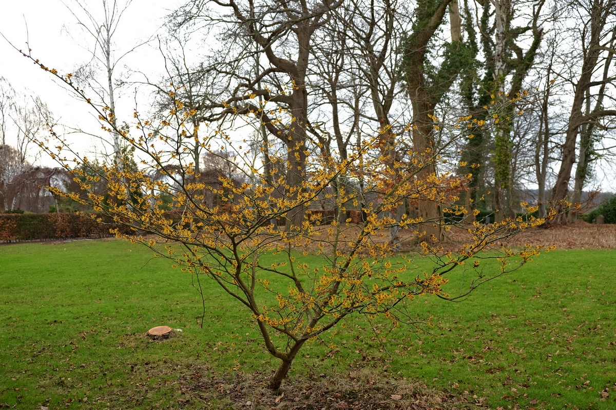Til slut denne smukke Hamamelis, som jeg fik Bent til at tage et billede af. Den stod i haven ved Søllerød kirke, hvor dåben blev foretaget.
