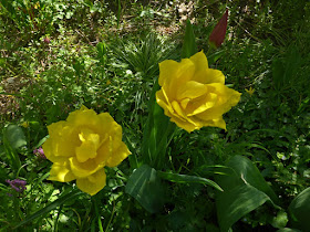 i den gamle del af haven er der en sti bagved her må appeldorn tulipanerne gerne blomstre, tja der er også mælkebøtter :)