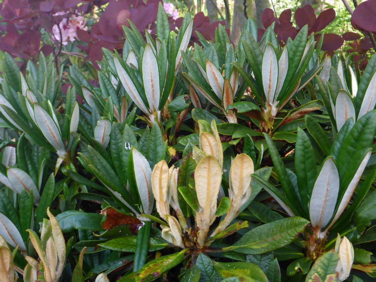 Mange fine rhodoerne, og nyvæksten er også en nydelse.