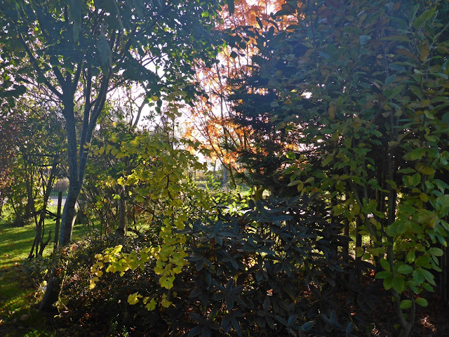 Solskin om dagen og regn aften, nat eller tidligt morgen, det kan vi lide, i dag er det dog dagsregn, så ingen billeder fra i dag. Her kommer nogle af de sidste oktoberbilleder fra haven. Nu er bladene ved at falde af og snart står træerne bare.